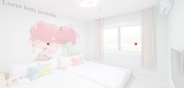 객실 안 개별 키즈 온수 풀장과 놀이시설로